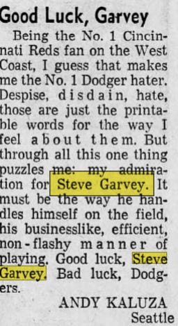 Garvey was held up as an impossibly faultless exemplar of traditional American values in an uneasy era for the country—so much so that a junior high school in Lindsay, California, shed its namesake of Abraham Lincoln and named itself after Garvey. One Dodger-hater wrote to The Los Angeles Times about his puzzlement over his own admiration for Garvey: