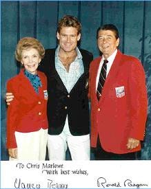 There are a great many competent and even brilliant play-by-play announcers in this world, but Marlowe — whom I would count among the brilliant, if only for his ability to make “Rosenthal” sound like a suave surname — may be the most Spicoli-ishly awesome Californian ever to broadcast a sporting event. (As I write this parenthetical in 2021, I just heard him describe an American beach volleyball player as “roaming the back line like a sand panther.”) A graduate of Pacific Palisades High, a star volleyball player at San Diego State whose shock of copper hair earned him the nickname “Lion,” and the captain of the gold-medal Olympic volleyball team in 1984, Marlowe once posed with Ronnie and Nancy in Chewbacca-chested glory. His grandfather is the famed movie director Sam Wood, his mother was a regular on The Young and the Restless, and his father appeared in All About Eve and The Day the Earth Stood Still. Marlowe himself made guest appearances on The Love Boat (making out with a supermodel) and in Rounders; he read four times for the part of David Addison in Moonlighting before they gave it to Bruce Willis, and eventually he chose play by play broadcasting over acting. He’s worked poker matches and cliff diving and whatever other suave pastimes have taken place in and around Los Angeles in the past 25 years. In the early 2000s, he worked XFL games with Brian Bosworth, which is sort of like pairing Bill and Ted at a roller derby.
