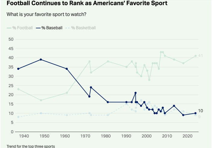 Great piece. I personally am a baseball enjoyer at all levels and am willing to watch an AL Central clash on Sunday Night Baseball, but I know that's not the same for most who (like you) are regional fans of a primarily regional sport. I'm curious about your thoughts/personal preference on baseball media. The NBA constantly points to the popularity of their league on alternative forms of media (outside of traditional consumption). Do you personally have any appetite for clips, newsletters, podcasts, or alternative forms of media that break down a game of baseball? A related question, do you think fans want, or even care about, engaging national baseball content? A topic I continue to be fascinated by.